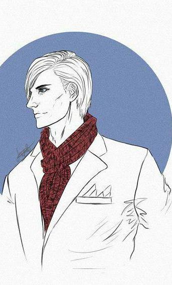 5. Внешность Высокий сухопарый мужчина. Тонкое длинное лицо, длинные ноги, пальцы и шея. Нос с небольшой горбинкой и тонкие губы. Имеет привычку кривиться в ухмылке. Светло-пшеничные волосы, спадающие на глаза. Ярко-голубые глаза, без примеси зеленого или карего. В одежде предпочитает костюмы, персонально пошитые по размеру. В основном, носит серый строгий костюм тройку. Любит часы, дорогие кольца.